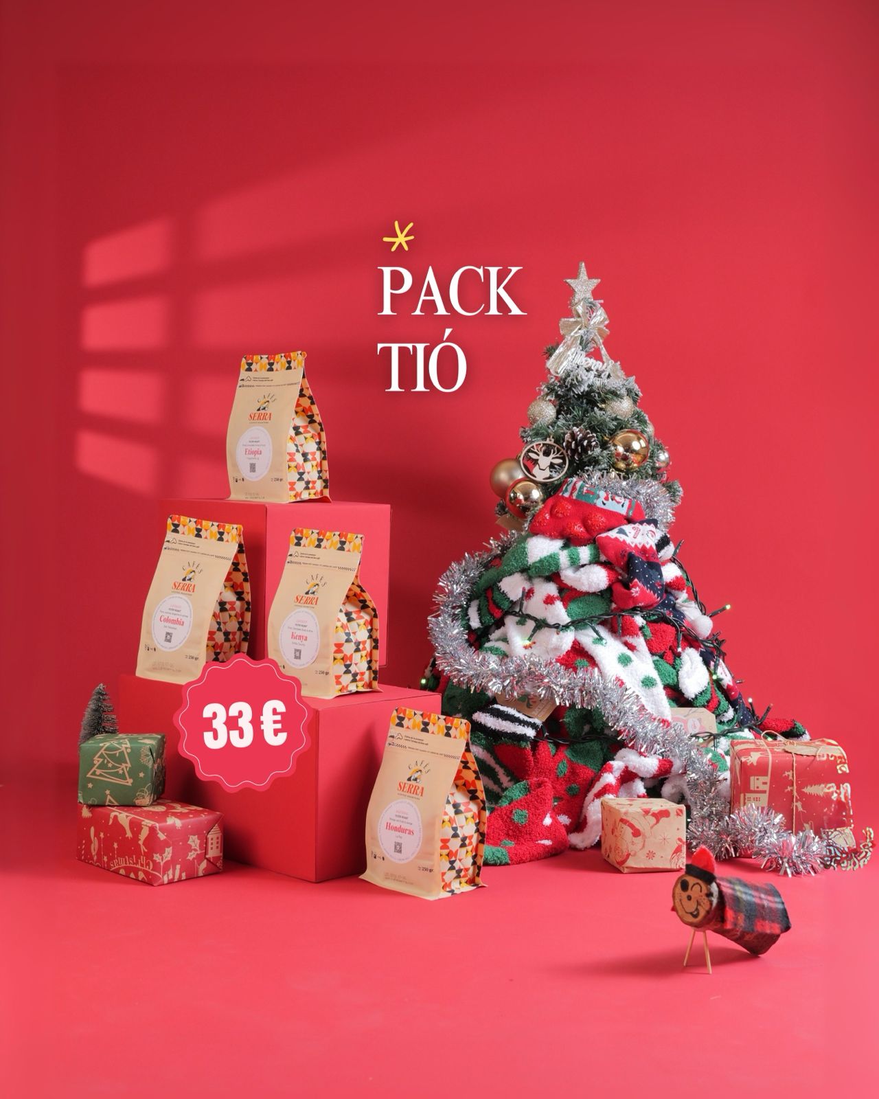 El Pack Tió proposa un viatge pels grans orígens del cafè, amb una selecció de 4 varietats d’alta qualitat torrades per Cafès Serra.
