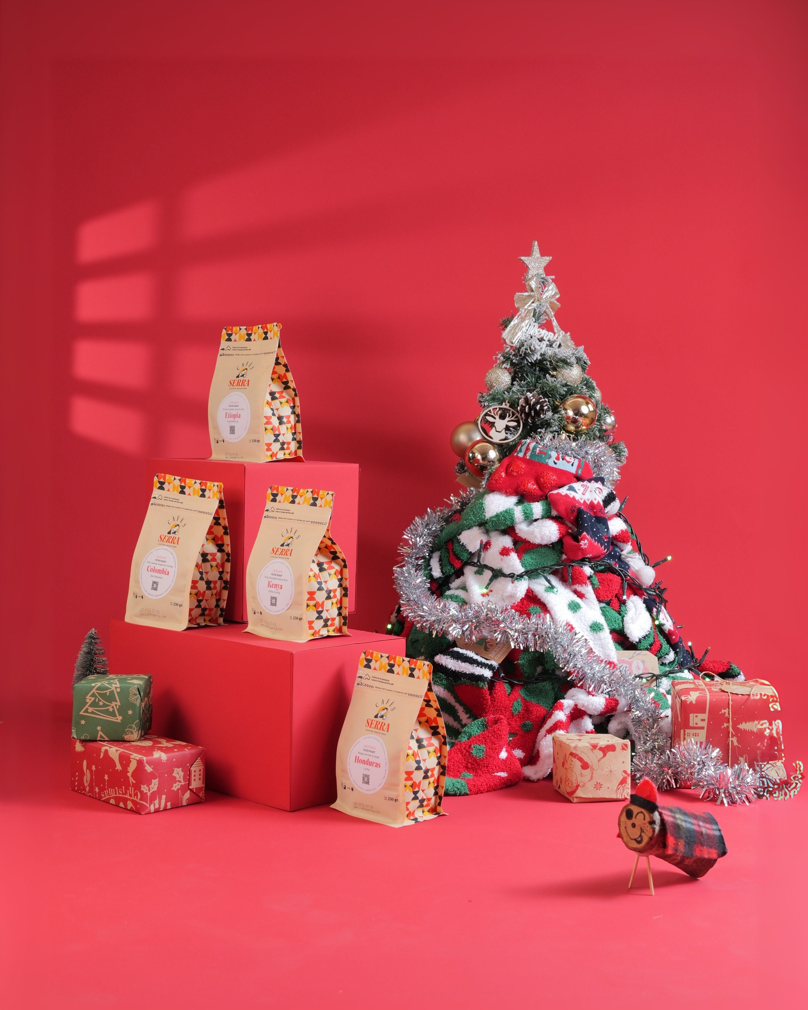 El Pack Tió proposa un viatge pels grans orígens del cafè, amb una selecció de 4 varietats d’alta qualitat torrades per Cafès Serra.
